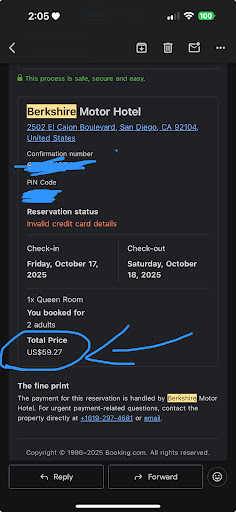 The second I left, I immediately received an email from the booking website that the hotel reported my card as declined, and that was the reason for canceling. Having worked front desk in a hotel before, it was obvious the hotel staff had overbooked and lied about a "declined" credit card to cover their mistake to the booking website.