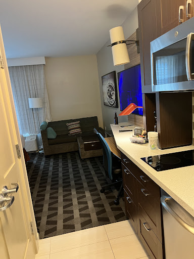 Read moreWe stayed for three weeks at the place to explore SD for the first time, and this place was WONDERFUL! There was a large fridge (with freezer etc), microwave, dishwasher (dish soap provided), utensils, cooking pots and pans, toaster, coffee machine basically everything you'll need to live somewhere long term. Downstairs, there was a nice-looking gym too. We cooked during our 3 weeks there and everything went smoothly because we had everything we needed and more. The location is around an $8.21 ride away from Balboa park by Uber, which is super convenient and not too bad. There is an MTS bus stop a 10min walk away. Oh the BREAKFAST was wonderful-- they had Cinnamon bagels, like 7 types of yoghurts, hard boiled eggs, juice, coffee, swiss mix, cereal, milk etc basically most of the food you'll want for a takeout breakfast that's easy to eat anywhere. They were extremely covid safe too because they had a staff pack the all-you-can-eat breakfast instead of everyone picking their own food. The staff? AMAZING! They were always so helpful and sweet and kind, and I'm thankful for them throughout the three-week stay. The room was also spacious (just like the photos), and they had a nice roomy bathroom with soap and all provided. There's also wifi provided (fast enough to video call and watch movies etc). When we needed things, we'd call the front desk, and they'd either bring the items up for us or send a cute robot upstairs (adorable!) Their lobby is spacious, comfortable, and has many tables and chairs (giving clean cafe vibes) for people who want to work. It's not necessarily a meeting room, but it is good to work if you like working in a public space. I looked at Airbnbs before coming, and, honestly, for the same price, this is much better, convenient, safer, and even has breakfast provided at no cost. During one of the days, the electricity shut off for a special circumstance for 8hrs, but honestly the staff was kind and the place was so wonderful I don't even think too much about it. This place is like a residence inn or an apartment with room service. You can order packages to the location or even buy things like water or instant noodles or medicine in their lobby. We didn't ask, but it seems like we could also borrow board games etc. LOVED THIS PLACE SO MUCH the only downside was there's not much to do walking around the place because everything was 10mins away by car, but overall BEST location by car to attractions and fun...