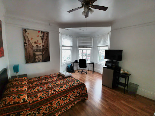 The room hall into the room was quaint. I've never seen anything like it. The two doors at the end of the hall were set at a very acute angle to accommodate the bay windows. We were close to China town and not far from Fisherman's wharf, Union Square and the Embarcadero. I had no trouble taking a bus to China Beach and walking along the trail ovelooking the beaches.