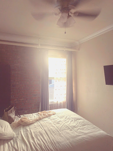 First off, as soon as I set foot in the place, I noticed that it was dirty and grimy. The light for the main fixture in my room didn't work. The carpet looked greasy and had spots all over like it hadn't been cleaned for ages. There were a lot of patches on the wall where holes or paint chips had been repaired.
