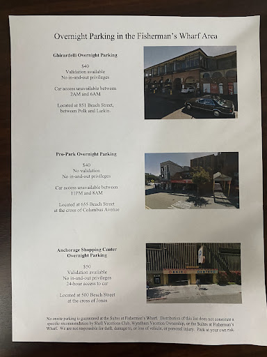 chose Shell Vacations Club @ The Suites at Fisherman's Wharf as a "use it or lose it" exchange for week about to expire, and also as a mid-winter "StayCation" just spitting distance from home across the SF Bay. Glad I did. Will be back.||Location perfect for public transit (bus, cable car, trolley), restaurants, museums, boat tours, ferries, and walkable (options include flat and hilly). Enjoy all the sights and attractions the City has to offer.||Staff are both friendly and responsive (front desk, housekeeping, etc). Not "luxurious" but very comfortable (big King bed). Kitchen had mid-size appliances (fridge, stove w/ oven) that are about right for a 1 wk stay, plus microwave, coffee maker, blender, toaster, etc. LR sofa "firm" to sit/lie on, but I hear it's comfy if you have another couple with you. You can go as fancy or as low-key as you like from this nice home-base for your dining out and in-house cooking. Living room is spacious, never felt "cramped" in spite of inner 1st floor unit (with nice semi-private patio sharing lattice wall with neighbor's house up the street). Quiet at night for sleeping... a bit of upstairs guest walking overhead on wood floors in Living Room. Some units have great views of bay etc. I enjoyed the relative quiet and privacy of my unit. Small nit-pick: bathroom sink is tall for a short person; and a bathtub would be nice after long days on feet all over town, but I'd still choose this place in...