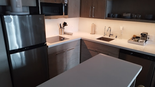 Read morePristine, beautiful hotel in a great location with fabulous amenities and exceptionally friendly staff. I saw a 2 star review for this hotel and cannot understand how it could have been rated so low. Do competitors pay people to trash their competition? This hotel is truly fantastic. I will look for an Element before any other hotel from now on. My only hope is that they are all this wonderful. While it is fabulous, I can’t call it perfect (I have yet to find a perfect hotel in my budget); there are things that could be added or improved. As I tend to find with every hotel I visit, the walls are thin. I could hear the tv in the room next to us and loud footsteps from above. Luckily, the noise from other rooms ended by the time I went to bed. The complimentary breakfast is pretty good. I found the hot breakfast options to be slightly lacking. For example, egg options were limited to mini, plain egg frittatas and there are no meat options - bacon, sausage, or ham would have been a great addition. The espresso machine is awesome and I could not get enough of the fresh, ice cold citrus/mint infused water. The rooms are exceptionally clean, beautiful, spacious, and comfortable. I don’t know if every room comes with a Kitchenette, but ours was fully stocked with dishes and cookware and the small refrigerator was a great size (plenty of room - much better than the typical mini fridge). The beds are good quality and comfortable, but pillows are on the flat side. Those who prefer a thick or firm pillow may struggle to get comfortable. I found myself wishing for a full size mirror and hand soap as our rom had neither. The fitness center overlooks the pool and the equipment is new. You’ll find several aerobic machines, a rack of free weights, a few resistance machines, mats, and medicine balls. A foam roller would be a great addition. Even though there are things that could make it even better, this hotel is well worth the rate. It deserves five stars...