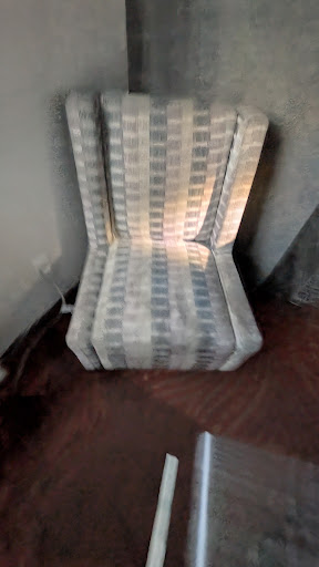 The chair was falling apart (like huge pieces of leather coming off) and had some sort of sticky substance on the back of it.