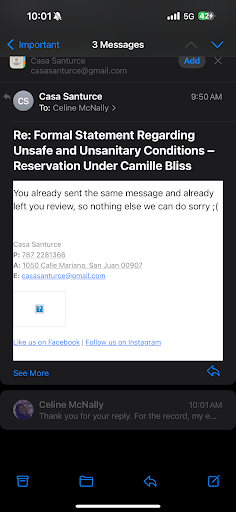 We hope this email finds you well. It is with great disappointment that we are writing to inform you of our decision to check out after the first night of our three-night stay at Casa Santurce. Due to the unsatisfactory conditions we encountered upon check-in, we are seeking a refund for the remaining nights.