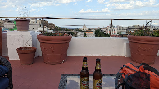 The rooftop has a great view of the city, which was a nice plus to the stay. There are tubs and lounge chairs you can hang in. Part of the amenities are also an open bar that offers beer, wine, liquor, coffee, juice and water. Which is a good perk. As mentioned, there is no elevator so prepared for stairs. It wasnât the worst as thereâs 4 stories but definitely something to keep in mind for your visit.