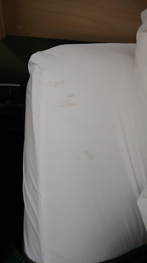 The room seemed mostly clean but there were two arm chairs that were absolutely filthy like dirty bus seats. Bathroom was relatively clean but there was spiders and the door kept getting jammed. Also the slide lock on the door was broken off, almost as if it had been kicked in.