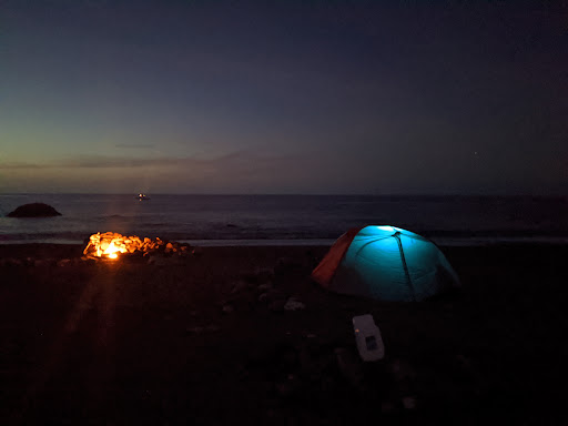 Read moreWe hiked the interior trail to get here so the beach breeze was awesome to feel on a hot day. We prepaid in two harbors visitor center to have firewood , water and a starter log which we could not find and was in the way back of a bottom locker. We were so tired from the hike and it was dark and we missed it.||The lockers are located between the portapotties. You will have a key with a number. They may put your items in an empty locker above or below if it doesn't fit all the wood and water so look around.||We walked down a sloping path to the beach to find camp site number with its own "fox box" to store food in so the critters don't get it.||The beach is a bit rocky so i recommend actual water shoes and not flip flops (which would probably work better anywhere on the island).||We underestimated the interior part of this hike. It is steep and challenging and the descent has a lot of loose rock. Walking sticks/trekking poles helped!||It is a beautiful location and we loved hearing the lightly crashing waves. Waves can keep me awake(i know), and this was the perfect amount.||The hike out around the coast and bays was more...
