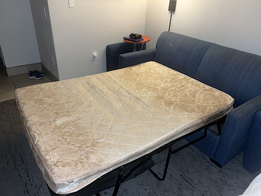 About 2 hours later, when we pulled back the sheets to go to bed, we found that the sheets were soiled (picture attached). I called the front desk on my cell phone to ask for clean sheets, but was told that we’d have to come down to get them as she couldn’t leave the front desk. I had to get dressed to go down to the get the sheets and we had to remake the bed ourselves.