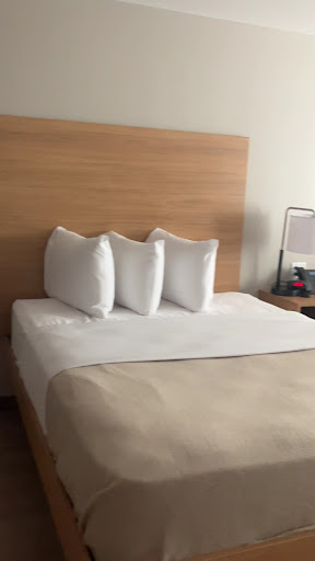 The grows: *We checked in at 8:45 PM and our room was NOT ready! Even though the kiosk allowed us to check in, we opened our door to find sheets balled up at the end of the bed and an uncleaned bathroom. After our long drive, this was disappointing. We did end up going for a bite to eat and the room was finished when we got back after 10:00 pm. *The bedding leaves a lot to be desired. There is no comforter on the bed, just a top sheet and blanket. The sheet were not soft in the least and the pillows were super uncomfortable. We were on the first floor facing the front of the building and the parking lot light shown directly into our room. The blinds were adequate but were not light blocking. The property only puts a small bottle of shampoo and one bar of soap in the room--that is all. I normally pack my own toiletries, but because this was a short visit I thought I was use standard hotel issued toiletries....no such luck. Luckily, Walmart is across the street. There is not ONE hairdryer available on the property. Not a big issue if you don't regularly dry your hair. I asked at the front desk and they did mention that they do get requests for hair dryers, but it didn't sound like they were going to get one anytime soon. *The self-serve coffee machine in the lobby was not filled or working all weekend. This was disappointing because there is no coffee maker in your room.