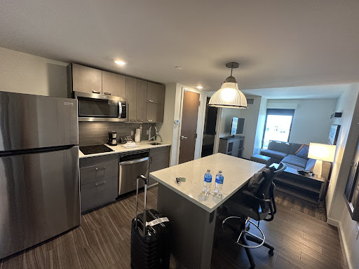 For three previous vacations, we stayed at the Hampton Inn and Suites a mile or so south on Scottsdale Road. Hyatt House North is a big improvement over the aging Hampton (common areas excellent but rooms aging, poorly designed and a bit depressing). And to our surprise, the Hyatt price was less for our period stay when we booked four months in advance. Hyatt Location, kitchen suite layout/decor, and common areas all excellent. Front desk staff very friendly and accommodating. Only improvement would be breakfast. Lynn (Supervisor) was very friendly and the dining area spacious and comfortable. But when breakfast is supposed to go 9AM...that means 9AM...not 8:55 when staff pulled things away. The food and beverage offerings could not keep up with the crowd for the whole week so we ended up using our kitchen half the time. Breakfast staff seemed indifferent or just not on top of things. Not in line with the rest of the property offerings. Suggestion: breakfast should ideally last until 9:30 and then they can pull...