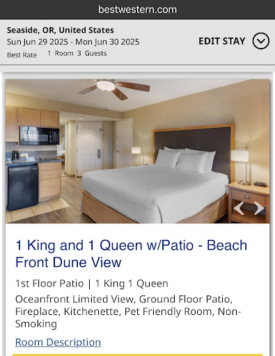 Read moreI am a fan of Best Western hotels, and Seaside. We travel to Oregon usually. But this one surprised me. Here are my reasons: We were there for 2 nights. No one came to clean our room. We didn't have those "do not disturb" stickers on our door. I think in general the quality of services is going down in the US. No wonder no tourist comes here anymore, and people are leaving. There were only 2 towels for two people to shower. And I must mention that Pacific NW is pretty humid and rainy (and cloudy). We were on first floor, and both nights, I couldn't sleep. There was a pool beside our room, and a hallway, and people were literally screaming. I don't know if Americans notice this, but they are very loud. The question is, why would the hotel want to establish rooms on the first floor and make guests tolerate smell, and noise? There was one window but that opened towards the same hallway. I wasn't able to open it because of noise, and that it was right close to the pool and not an actual outside like a regular normal window. I don't know if you have noticed this, the staff (receptionists) are disinterested and rude. I don't know if they mean that, but they are rude. Or maybe it's just a broken education system that makes people this rude, and far from professionalism. There is a chance that they don't even understand. I got this sense when I was talking to them. I also got it when other guests were complaining about the service and the staff were just acting so disinterested. Our room only had a bed, a small chair, and a small desk. No couch, and it was so small, and kind of unclean and dusty, that made me start couching. Once I talked to staff, their only answer was: we are fully booked, do you want to check out and leave? And they offered this "check out and leave" several times. I know this country is known for being so terrible to guests and immigrants. But I never believed it, until I came to this hotel. They are very rude, and they seem to have not enough education and professionalism. I honestly don't know why such a small closet size room even exists. Standards in this hotel are so low. It is very sad and disappointing. I saw coffee maker on microwave, and that on a fridge. There was no space to walk well. It was saddening. And the sadder point is that either staff do not understand what professionalism is, or just do not act professionally. Both ways, it is sad. There was a tiny bakery, and I think you should pay for it, because the breakfast is not included. It's really sad how far American hotels are compared to the rest of world. I have traveled a lot and have seen the world, unlike most Americans who have never traveled anywhere expect for Cancun. My advice: avoid this hotel. No matter how much you pay, they are going to treat you badly if they want. And they are rude. I don't like arguing with rude and unprofessional people. Go to other hotels instead. Go somewhere that doesn't have an excuse for treating you badly. I am never going back...