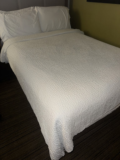 Arriving, the lobby is clean and nicely decorated though I wish I could say the same for the rest of the property, discussingly dirty. Look up, loads of pigeon crap on every ledge . The back of this place hotel looks like the setting for every cold case mystery. A creepy lake with a trail inhabited by some homless and suspicious men hanging around. The staff on the other hand were professional and quick to assist with providing my family with extra towels for the pool with the out of order hot tub. Park in the rear of the hotel at your own risk, no security to be seen anywhere. No place on this property feels safe to let your children out of you sight. Especially in the back. Let's talk about the room. Fist off the smell of cleaning products makes the carpet feel even dirtier then it already looks, nasty. The bottom threshold seal the bottom and side of our room door was half gone leaving gap about half an inch wide just perfect for those critters that dine in those boxes that are located in plain sight throughout the property, unbelievable. I've stayed at other Holliday in properties and in comparison, this place is a dump. The people that gave this place a good review must have absolutely no standers do to their lack of expectations. If only I were sleeping in the lobby and not on the fith floor with the pigeons. This property is in need of a complete renovation inside and out.nasty, nasty, nasty. Best thing going here are the staff members, polite, professional and happy to serve. 10:34 pm, night 1# had to revisit my review to add to the disbelief. We just finished praying with the kids when all of a sudden i here what sounds like a dog in distress, crashing sounds and incoming emergency response vehicles. Turs out it wasn't a dog at all, just a deranged Goose on meth or something. As for the police response. Not sure if they found what they were looking for in the bushes but somebody got taken away in the ambulance. Day two, Breakfast. Food is fresh, Hispanic service woman gracious and had everything looking in order and vary kleen, likewise was the dinning. area. Second night returned from a long day to find the parking lot both front, and back completely full do to three C10 dump trucks, one tour bus and a armada of bobtail trucks all parked length wise. Unbelievable, had to circle the building till something opened up, brutal. Let's talk room 505, carpet frayed and nasty, in room charge port broken, beds are soft though I di find the plastic packaging from a three pack of Modelo tall cans stuffed under the matress from one of the previous guests, I left it there. Bathroom was clean but the towels smelled Hella weard so I ordered up some replacement towels, no different.. If your a light sleeper, forget about it. Sounds like ever Camero and Charger in town uses the massive chilli's parking lot next door as burn out central , all nigt long, being only outdone by what sounds like space X launching rockets and doing fly buys all night long, brutal. If your looking for an over priced motel that houses every traveling construction worker, truck driver or low budget vacationers, this is the spot for you. Were I lay my head is everything to do with my vacation experience. In closing, being that my wife booked are stay i couldn't say anything about my displeasure, lesson learned. Next time I'll book. God bless . Yours truly...