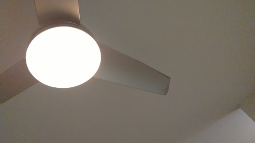 The walls in the second room had the same appearance as the walls in the first but the overall room seemed cleaner, although for our four nights stay we had a strong and persistent odor of bleach in the bathroom/laundry room. The living area had a sliding glass door and a balcony that overlooked the alley and entrance to the parking garage below. The sliding glass door had been left unlocked and it would be easy to go from room to room via the balconies. When I opened the sliding glass door a smell of urine came wafting in from below, I have to think it's from the large population of homeless people in the area. The blinds for the sliding glass door were missing a large number of slats so we had to hang a sheet over it for privacy.