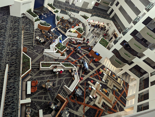 The hotel is in incredibly good shape, very clean and well kept. I love the open atrium and unique design of the hallways. Not many hotels have this design and I really like it. It was a busy weekend with lots of travelers coming and going and we never had any noise disruptions and truly didn't hear any other guests once in our room.