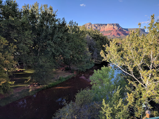 If you're looking for a shady spot, take the stairs beneath the foot bridge down to a little green space on the creek. Enjoy a sit in the Adirondak chairs and wave to the people across the water at the resort. It's easy to forget that this place is located right on AZ-179 with how...