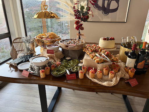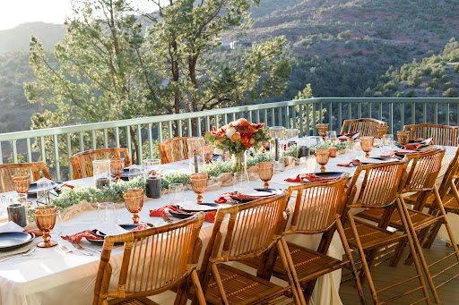 The retreat itself was absolutely stunning! Set in the hills of Arizonas most infamous red rock, this home just oozed desserty vibes. Each room had its own element design and was decorated so beautifully. The main living space was open and cozy, perfect for small or large get togethers. Lastly and probably my most favourite part of the retreat was the views from their huge deck where we had our wedding reception, followed by another upper deck surrounded by gorgeous twinkle lights. I seriously felt like I was in a disney movie.