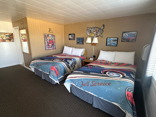 Read moreI decided hubby and I would stay in Seligman, as my daughter had been to it the year before, on a bus tour stop, on the way to the G. Canyon. The town sounded like what I would enjoy, as I'm a lover of Rte 66 nostalgia/items!! I booked this hotel about 6 mos ahead. Hubby and I usually stay in chain hotels, but this town has all mom and pop motels/hotels, which adds to the quaintness and history of those types of motels along Rte 66, back in the day. We arrived here just after supper hour, and when checking in, the manager was very pleasant and chatty (which I had read about when looking at reviews), and he talked to us for about 20 mins, explaining what was still open in town, and how he ended-up coming and staying for good in Seligman! Hubby was impressed with his talking skills, and said he had never met any front desk service person who had given so much info! I booked this place, as it was or was one of the least expensive in town, and offered a free continental breakfast. He handed us our room key/fob, the old-fashioned type, with the colourful plastic part and metal key, and he told us we had the King's room... the Elvis Room, which I was happy about, as I had read about all the themes ahead of time, and hubby and I had recently watched the Elvis movie at home. The room was full of pictures, signs, and framed records all to do with Elvis. Thr room was an alright size, with a king bed in it, large tv screen on wall, and a refrigerator over in another area. The bathroom was small, but it didn't matter as we were just spending one night there. The room was quiet at night, as I think we were the only people staying there, being low season of winter, We didn't hear any trains going by at night, which others had said were noisy, blaring their horns...nope! In the morning, hubby said he had the best sleep of anywhere on our whole trip (just over 2 weeks at that point), and he liked the large, numerous pillows! Continental breakfast was just so-so for us, as we are used to the hot offerings and more at the chain hotels we usually stay at. I'm not fond of the wrapped, too doughy, muffins and other pastries. But, the manager doesn't have anybody else there to make hot foods. It sufficed until we could eat lunch in Vegas. Before we left town, we got to visit some souvenir shops. I enjoyed the hotel stay and seeing some of the shops, but hubby wasn't on the same page. Before we had arrived in Seligman, coming along the highway from the east, I pointed out the small town/buildings in the distance, and mentioned to hubby that, that was the town coming up. He thought I was joking, and as we got closer, he couldn't believe I had booked anywhere in the town...he almost died! He just felt it was all...