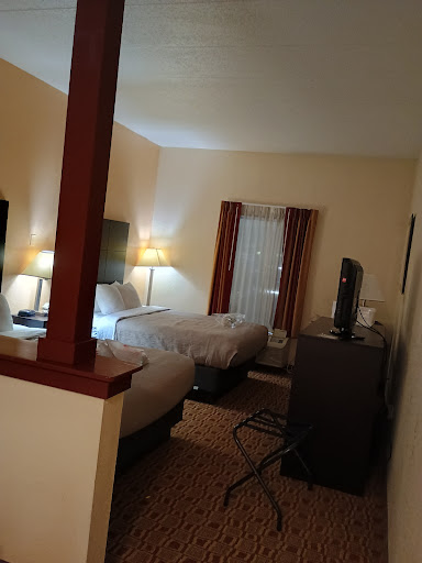 Read moreMy two teenagers and I recently stayed here due to a water main break in our neighborhood that had our water off for a few days. We made the reservation through the Choice Hotels website and check in was uncomplicated and friendly when we arrived. The location of the hotel is pretty ideal for travelers due to being situated very close to the Sellersburg exit off of Highway 65 in Southern Indiana. The parking is ample and the lot is well lite at night. Most of the employees we interacted with were very friendly and helpful. With that being said, we discovered that the indoor pool is closed from October to March yearly. There is no mention of that during the reservation process, nor when you check in. My son was very disappointed and I was not allowed to cancel our reservation to go to a different hotel with an indoor pool that the kids could actually use. I was told that there was nothing they could do and that I would be charged for the full amount of I cancelled the room at that point. So, we were pretty much stuck. The person at the desk was the manager, so there was no one else with whom to address this matter. Also, I asked about the onsite laundry options and was pointed to the one washer and one dryer they have on the 2nd floor. So, after putting in a load of clothes, I started the washing machine and it would only fill and drain (cold water only). There was no agitation to the cycles at all. So, the clothes still had soap and fabric softener on them when it was done. Luckily there was a 24 hour laundromat near by. I reported the washing machine to the lady at the front desk and she didn't offer to give me my money back ($2.50), nor did she put an out of order sign in the machine to keep other guests from losing their money as well. So, I made a sign "Out of Order" and placed it on the machine. The sign was removed by someone afterwards. I typically don't take this much time when reviewing a hotel, but there were several cleanliness issues here and unsafe practices (exposed wiring, debris and caked on dirt on ice machine dispenser, and stink bugs in random locations throughout the building and rooms). My chief complaint, however, was with the bedding and various dried on mystery stains that were on the headboards of the bed and on the mattresses/walls by the beds. Clearly the stains had been there for quite some time and visibly, there hadn't been an attempt to clean them off. So, we were left to avoid the beds altogether. Thank goodness we had our home to return to...