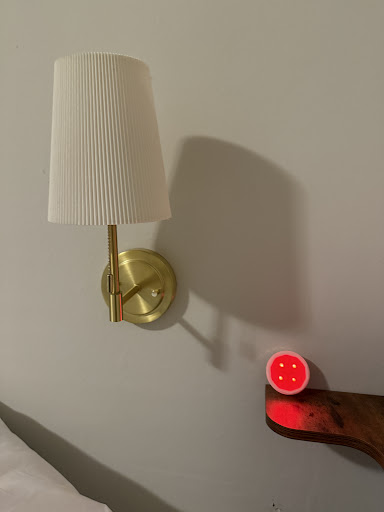 Firstly, the wall sconces in the room were not functional in the way you would expect. When pulling the chain to turn them on, instead of illuminating, the cheap round LED light fell off the top. The dim light provided was controlled by a button, which, frankly, was both ineffective and aesthetically unpleasing.