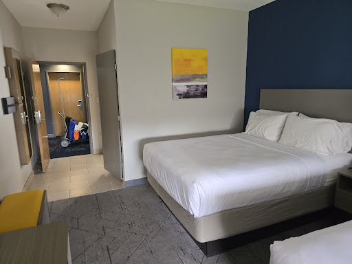 Read moreWhen I drove into the parking lot and saw no cars, I thought, "Uh Ohh." When I talked into my room and the heat was turned off, I thought, "Uh Ohh. When I told the desk manager that I was planning on using the pool the next day with my grandkids and I saw the look on his face, I thought, "Uh Ohh."||"Uh Ohh" was right.||I don't often leave a hotel angry. I did this one. We went to Kings Island's Winterfest and stayed at this hotel because it was a Holiday Inn Express. Normally, these hotels are of a good caliber. Not this one. ||So we came home after the Kings Island event and went to bed. The beds were comfortable. That is about all I can say. The next morning we woke up and walked to the subpar Holiday Inn Express Breakfast. Minimal at best. Pancakes the size of drink coasters, Yogurts half a cup, Only fruit was bananas. Special "K' with berries was corn flakes. If they ran out of anything, well wasn't replaced because they said they were out of the item. Coffee was gone and not refilled at breakfast!||We walked to the pool that was advertised in the picture's on the website. Indoor pool. We walk in, expecting to go swimming and there was a 40 degree room with water that was freezing. Disappointed Grandkids. Frustrated Grandpa. So, we walked into the fitness room to see if there was anything they could do. Dirty, moldy, carpet need cleaned beyond cleaning.||How in the world is this a Holiday Inn Express!!!!!!!!!!!!!!!!!!! Do NOT go here if you want the Holiday Express experience.||So, I then checked the TripAdvisor reviews, (I wish I did before hand). The responses are automotive and exactually the same for each review. ||Bare minimum, not what I expected from a Holiday...