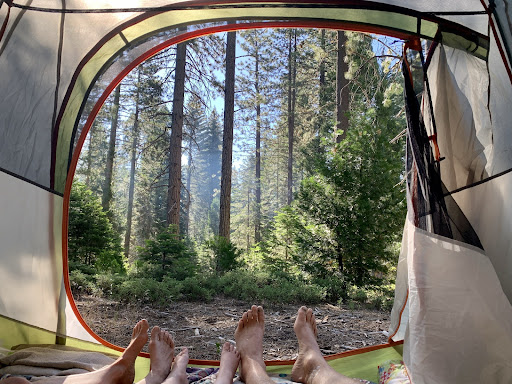 This was a first tent camping experience for my small family of three. I was adamant about getting a campground with showers, but they were all booked. Luckily we were led here or we might not have discovered this campground. The place is beautiful, and campsites are pretty spread out. Like other reviews say, the sites on the outside have the most space. There's a nice trail with direct access from the campground, (stroller friendly) which takes you to a meadow and through some trees. Having a direct access trail was a luxury since we had a toddler, which meant there was no having to pack things up to just get out a wander for a little while. Vault toilets were just that, vault toilets. Nothing fancy, nothing terrible. Kept as clean as they can be kept. Didn't bother us, although I can say I'd get a site directly next to one. ||||We were in site 85, which wasn't the best, although it is next to a water spout so that was convenient. We went through all loops and noted several amazing sites, most all on the outside of the loops. ||||Speaking of traveling with a young one, this is are great spot if you are! Convenience is key with young children and this campground is also very close to two other things-to-do, Hume Lake (10mins) and Grant Grove Trail (15mins). We were camping in late July and temperatures were in the high 90's. With the humidity as well, this was absolutely miserable in the day. For our days we were either on trails under the shade of the large sequoias, or at Hume Lake. Way too hot to be at camp. Yes there are trees at camp providing some shade, but not like on the trails. What we also liked about this campground was that it wasn't a completely crowded mess as most of the others are inside of Sequoia National Park. Yes some of the major trails were a good 45mins or more away, but it was worth being away from the crowds, plus the drive is beautiful.||||Hume Lake was a little piece of Heaven on these scorching days. Our family enjoyed the shade of the trees and cooling off in what felt like a perfect temperature water of the lake. Spending a full day here was easy. Pack food, chairs, and don't forget a blow up tube or something similar to relax. You won't be sorry. Again, only 10mins from Princess. Loved that. Also, they have ice, gas and food here, which we also loved.||||Grant Grove Trail was a short trail that was stroller friendly. Also very close to Princess (15mins). Beautiful trail but very short. We really liked the 1hr drive to Kings Canyon at Road's End. The river was beautiful and nice to dip in...although freezing even in the hot weather! On the way there/back is Zumwalt Meadows. We didn't care for the trail, but the views were great and the bridge was neat. Also an 1hr away from camp was the Congress Trail with the World Famous General Sherman Tree before you start. Brace yourself for the crowds, and whatever the trail guides say, this trail is NOT, I repeat NOT stroller friendly. You will be hating life if you bring one. I promise. If you are daring, then please at least take the shuttle to the bottom (where you can only shuttle, as there is no parking allowed). The trail isn't that miserable with a stroller itself, mostly just the journey to it from parking. If after reading this you decide to take a stroller from the parking area down to the General Sherman and/or the Congress Trail you will not be happy. I don't care if your the most fit person in the world. I'm not kidding, do not forget this! Quite a few of us, ourselves included, endured...