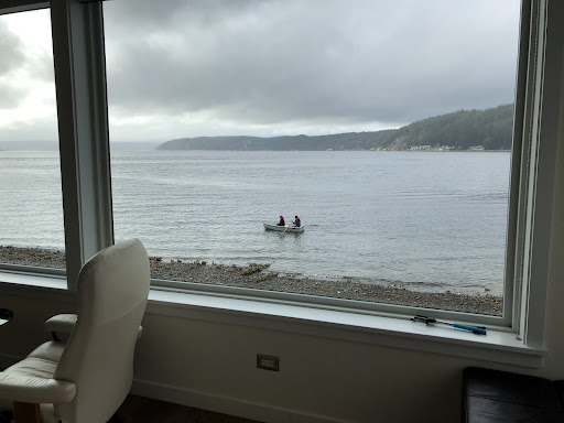 This place was beyond our expectations. We’d give it 10 stars if we could! Clean, comfortable, and fully equipped with everything we needed. Some things they had were detergent, mosquito spray, life vests in different sizes, shampoo, conditioner, body wash, olive oil, spices, and coffee. My husband loved fishing off the dock in the mornings while I loved watching him from the bathtub. Lunch was spent down by the water shucking our own fresh oysters. Happy hour spent in the hot tub. We enjoyed romantic sunset dinners and a fire every night. Late nights we sat on the deck loungers and star gazed. The bed was wonderful, it is on the firmer side, with soft silky sheets and an unbelievable view to wake up to. We used air conditioning most nights but one night the wind picked up and it felt great opening everything up and sleeping to the waves. The upstairs bathroom had heated floors, dimming lights and even comes with a wall mounted magnifying makeup mirror. The closet also has a full-length mirror. The owner’s artwork decorated the house nicely. In my opinion the house sits in the best location on the canal. You get sunrise and sunset views as well as the Olympic Mt range. Views anywhere in the house are just stunning. We got to see seals playing in the water all day long. Bring binoculars! We lucked out in having the owners stay in the rental next to ours with their boat the same week. They were kind enough to offer us a tour of the canal. It was an amazing time. Topped off our vacation for sure. Although that’s highly unlikely to happen on your trip it does show the owners go above and beyond to make your stay incredible. We have already booked a returning stay. We can’t wait to go back! Don’t miss out...