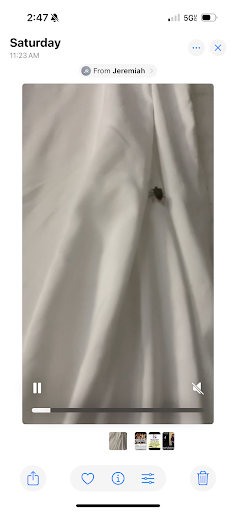 The room itself was dark, broken floor tiles, dirty tub, mini fridge and microwave not in the entertainment unit where they often are. They were plugged into a wall outlet by the bed. The bed sheets has burn holes in them too. I saw no signs of bugs - I do check for bed bug signs.