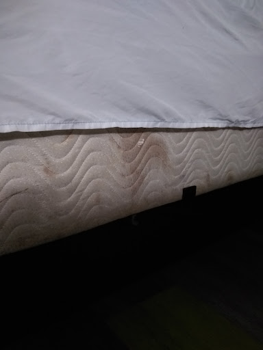 This hotel was convenient off the highway. That is where the good part ended. I called this hotel directly for a reservation, confirmed that we would be allowed to park there because we were towing a 30' trailer. Received confirmation on all counts along with their no refunds policy since I was making a same day reservation. But once I got there the first thing the desk clerk said was you can't park here! I informed him that I had just spoken, asked, and confirmed with the person I made the reservation with 20 minutes prior that it was permitted. He said he had been there since this morning, that he had spoken to me, and that he never said any such thing. He did however try to 'interest' me in some vacation package, signed me up for points I didn't want, and other offers. I don't know if this is a requirement of the reservation process for this hotel or if this desk clerk has a side job for these other companies. Waste of time when all I needed was a reservation and obviously my questions accurately answered. Now I made this call sitting in a truck full of people, towing this said trailer. It was a priority that would not and did not slip my mind, besides having witnesses! The website for this location stated RV,s and buses welcome. So, I stood my ground and was allowed to park out by the dumpsters. Why the fight, I don't know? Perhaps with the nonrefundable room he was hoping to resell to the half dozen people who pulled in after us because of the terrible weather? I can't explain, since when we woke up in the morning, there was a smaller trailer and an RV bigger than our trailer parked right outside our room! That was our welcome. As for the room, it was average as long as you didn't look close. Everything was bare minimum. A/c wasn't even running at low or fan so the room was stuffy as can be. Minimum towels, fewer face cloths. While filling the ice bucket from the machine, one of my roommates was questioned by the manager as to what room she was in. He stated he wanted to make sure she was using the right machine for her location. Really? Micro-manage much? But the icing on the cake had to be the stains on the bed. The guys thought blood. I prefer not to think about it. But it is time to change it out, not cover it up. See attached pic. All in all, I can't...