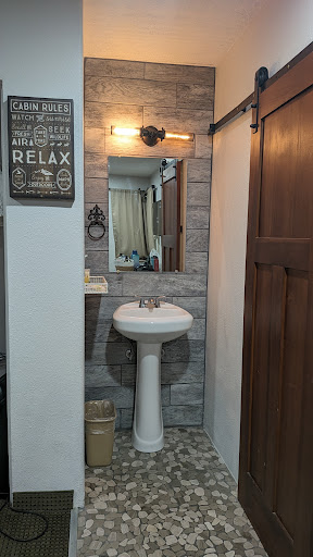 Writing this review on my grandma Cheryl's account. Our stay was great the room is very nice and has a lot of closet space + a mini fridge and microwave. $62- $63 after pet fee. Large flat screen with basic cable. Sink is in the bathroom so my grandma could do her hair without waking anyone. Nice sink and shower water pressure. We stayed in room 2 looks like a house converted into a motel... Room has central air controlled by the management + a small fan. Lots of outlets (outlets by bed to plug your phone in) Plenty of parking had 2 cars with 2 small trailers. Dog/cat friendly with a $10 fee (normally $20 at chain motels) Owners let us check out an hour early because we arrived late and were very tired. cons: The bathroom has no ceiling fan but does have a window. (I would paint the bathroom walls with water resistant white paint sold at home depot or hardware stores to stop water damage and I would put a sign up asking guest to crack the window before showering. Inside of the window needs cleaning its caked in mud (I suggest checking all the Windows every few months at least) No coffeemaker in room but the office has coffee after 10am. One window is broken/hard to shut please check the windows. Last con: room has no phone to call the front desk maybe the could get a Wi-Fi home phone in each room or please at least post the phone number for the front desk. No other complaints room was very inexpensive and the owners are very friendly. One of the owners came to our door to let us know that the coffee is ready. American owned. Not a chain motel. Way better than motel 6 or other motels. Saw some other reviews complaining about the Wi-Fi. It worked great during our stay. Will definitely stay again if we ever come...