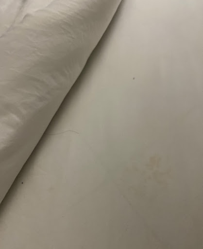 2.) Bloody sheets. Once the blood was observed, my colleague removed the sheets and placed them into the floor. Upon returning to his room, he discovered that the blood stained sheets were PLACED BACK ON THE MATTRESS. Again, I don't know where in the World this would be acceptable.
