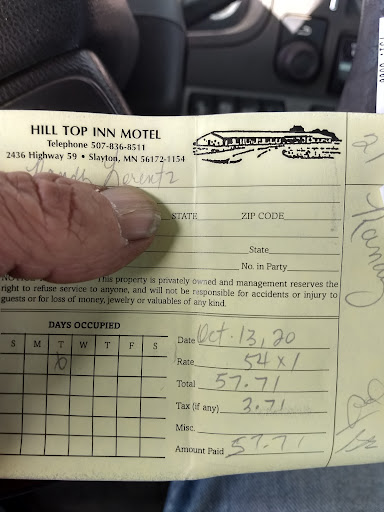 Read moreI am currently Traveling through the Slayton Minnesota Area. Staying the night at the Hilltop Inn Motel right off of US Highway 59, located in the Town of Slayton Minnesota.| Very easy access from the highway. VERY nice inside lobby reminds. Me of a Hunter's Lodge. Excellent Down Home Decor and Super Clean.| Looks like these Folks enjoy their Business and take care of their property very well. The General Manager Christie is a very nice PLEASANT good hearted lady who treats people very good. Definitely been around and a people person.| The Rooms are very large and Clean beyond normal standards. Power strip and Wall mounted Flat Screen TVs with very good Channel Line up. The beds are nearly brand new and Comfortable. Recliner chairs nice clean carpets rugs and Bathrooms.| As I mentioned before, it does appear that the Owner and Manager here go above and beyond to make sure that Guests have a good stay. The consistent good Reviews definately reflect this.| My Overall Opinion is very good. Good clean safe American Run Motel!! Very affordable too.| Highly recommended to all Travelers on US Highway 59 who want a decent rest from the Road and to be treated decent in a mom and pop place. Make this your designated stop when coming through the area.| LETS SUPPORT OUR American Run Businesses!!!!!! Thumbs up to Gordon and Christie at the Hill Top Inn...