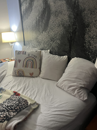 Double beds are clean and relatively comfortable. The twin pull out is scary. When opened up there was a used face mask on top, several of the frame springs were missing and/or broken, there is a foam topper that is ripped in several places (& is only 1" thick at most) and the mattress is literally ripped along the seam. There was no extra bedding in the room for the pull out. I went to the front desk to get some and was told there are no extra pillows available. Front desk woman was very friendly and as accommodating as she could be. She gave me an extra blanket to use as a pillow...which we are using as extra padding.