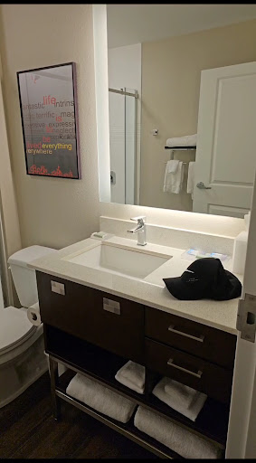 Read moreThis was an overnight couples stay to relax and get some rest. The check in process went smoothly. I had requested late checkout, and it was honored with no hesitation. The lobby is one of the best layouts that Iâve seen yet! Itâs very spacious with ample seating for breakfast. The fitness room is 24 hours. I will utilize it on our next visit, as well as the swimming pool. The King Suite has stainless steel appliances-2 burner stove, dishwasher, full size refrigerator, and microwave. A Keurig is also in the Suite, which is more sanitary than a regular coffee maker. The furniture was comfortable, the floors were clean, the bed and pillows were comfortable, the closets were great for organizing your clothes, the bathroom was very spacious and we fell in love with the massager feature on the shower head! The water temperature remained hot from check in to checkout. Some hotels water is warm by morning. Also, the water pressure for the massage feature had the perfect force and pressure to relax your body. Again, we fell in love with that feature! Another feature is on the television in the room when you first arrive! I donât want to spoil it for first time guests, but Iâve never seen that feature at any other hotel Iâve stayed at before, and it was a nice added touch to the stay! Donât turn your television off or turn the channel until you figure it out! Actually, I thought that housekeeping forgot to turn the television off, but it wasnât long before I saw why the television was on! Breakfast was good, and I give two kudos for offering turkey sausage because I donât eat pork, but pork was also an option. There was waffles, eggs, fruit, oatmeal, potatoes, juice, milk, coffee etc. Overall, the hotel is still new, and it still smells new! The hotel is clean, and the staff is friendly and professional, and the suite, as well as the bed and pillows were very comfortable! I would recommend this hotel for...