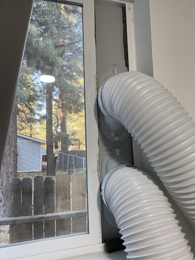 The portable ac blocks being able to easily get into bed on one side. The curtains do not block out the lights that fill the property. It’s nice for parking lot security , but the rooms definitely do not get dark. The portable ac panels vent out the window with large tubes, and because they don’t make a proper seal you will hear the hums of all the other air conditioners as well as street noise. So it does not get quiet.