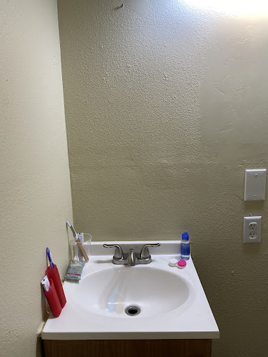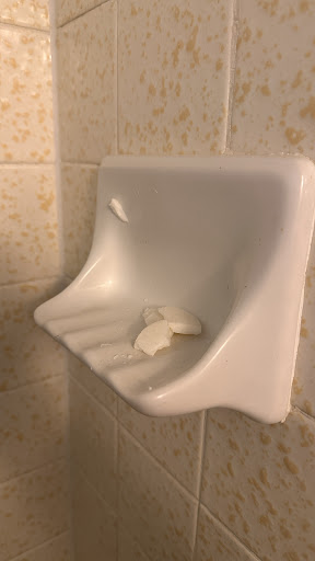 The bathroom has no mirror, but does have a nail where the mirror used to hang, so you get to gaze at that while brushing your teeth over the world's smallest sink. There is no bathroom counter, so we ended up using the top of the toilet to store stuff. There is nowhere to hang anything (like a shower towel) anywhere in the room as there are no hooks in the bathroom and the closet has no closet rod or hangers. The top section of the closet looks moldy (this was my partner's observation as I am not tall enough to see up there). The bathroom shampoo is an old travel-sized bottle that they refilled and was not sealed, which is eco-friendly but unsanitary given the current pandemic. The water takes a very long time to run hot, and when it does, the water pressure is laughable.