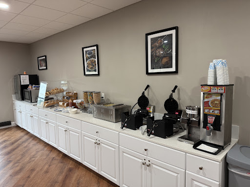 The hotel breakfast is sparse. The waffle machines were the best part, but there are only two and there was always a long line. The tables were never wiped down and people quickly crowded the breakfast area each morning. Coffee was terrible. The bathrooms in the breakfast area were dirty and didn't have soap.