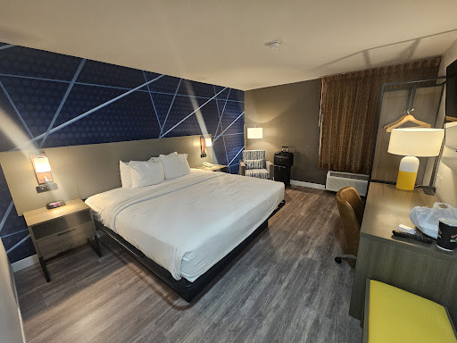 Read moreOverall, the stay was pleasant. I was in town for one night for a concert at the Urban Lounge. The hotel room was clean and had all the amenities we needed for a one night stay. The front desk agent that checked me in was friendly and pleasant and I appreciated him giving me directions to the elevator that was closest to my room. He was very thorough and informative! The elevator was located just around the corner from my room, which is convenient for my dog and disabled mother who were travelling with me. There was even handicap parking in the back, allowing easy access to the back entrance of the hotel. The pet fee was reasonable compared to other hotels and I completely understand needing the deposit, which is fine. I would say the only complaints would be the bed and the shower/bathroom. I was in a deluxe king suite, which overall was very spacious and the bed itself was comfortable. However, it seemed to have some kind of metal base and made loud sound every time we got on or off the bed. It was quite loud and late at night, I was worried about waking up the guests below us as well as my mother and dog. The bathroom was a tad small and cramped. The shower curtain was also not good. I'm not sure if it was missing the actual curtain as it looked like the fabric shower liner was the only thing on the rod. I appreciated the non-slip mat in the shower as well as the bars, but due to the curtain being so thin, by the time I finished my shower, the floor was soaked and the shower mat was useless as it was completely drenched in water. I had to use the towels to dry up a lot of the water that had come out of the shower. I made sure the magnets at the bottom of the curtain were secure and kept the curtain closed during the shower, but it still made the floor sopping wet. It was still a very pleasant stay and had what we needed for a one night stay. It was also very conveniently located to the Urban Lounge so I didn't have to travel far from the hotel to...