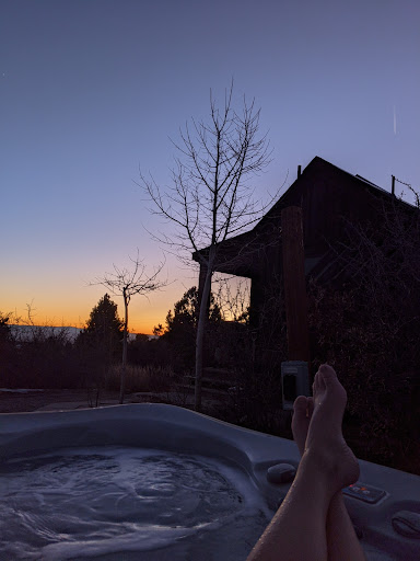 This cabin experience was amazing to say the least. The ride up was very scenic and beautiful. The cabin (Grey Dawn) was right off the main road and provided privacy in an intimate space and property. We were pleasantly surprised to see the outdoor hot tub (which we used as soon as we settled in). We were also surprised to see a black and white cat approach our front door as soon as we pulled up. Later to find out that the property has 4 cats that are used to roam the area for mice. The cat (which we named Oreo) was harmless and didn't bother us too much (I am not a cat person, but it was nice to have a guardian of the cabin). The amenities in the cabin were great, good coffee choices, hot plates, griddles. A small downside was we had to wash our dishes (who likes doing dishes?). We had stayed at another cabin in Zion where the dishes were washed for us and that was convenient. The views from the second floor bedroom were amazing, as well as the view from the hot tub. I would recommend getting everything you need (food, alcohol, etc) beforehand, because its a pretty good drive to anything close. We walked the property a bit. The "ponds" that they have were not really that impressive (we only went to two of them), but the cabana area was nice (we didn't spend too much time there), You could read a book or just hang out if you don't have much to do. Its very quiet and scenic in the area. We didn't see 1 other person from the time we checked in (just right into the open cabin with the keys inside for us) to the time we left. Everything in the cabin was clean and up to date (as much as a "cabin" can be). They had Direct TV and an electric fireplace which was nice. The bathroom toilet was a little finicky but they warn you about that in the literature. Without having seen anyone from the property or talked to anyone on the phone, I still felt that the management were so helpful and accommodating. I received multiple pieces of literature about the property, directions, etc in my email prior to our arrival, and then when we arrived there was a similar packet with much more additional information right on the table when we checked in. It really made it feel like they wanted you there and that you were truly their guests. I would highly recommend this property and would stay here again without a doubt. If you don't mind a little bit of a ride (25-30 mins) down the mountain to get to Moab, then I would recommend you stay here, definitely worth the trip. I felt like i was vacationing like a King when I was there, and the cost was very affordable (for what you are provided with)....