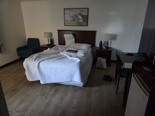 Nice place to stay for the night, either if working nearby, or just as a getaway. At first, this might look like a century-old motel, but on second glance - from the siding outside to the sheetrock inside, it's either new construction or completely renovated. Spacious rooms, like another piece of furniture (or 2 - table and chair) might be worked into the layout.