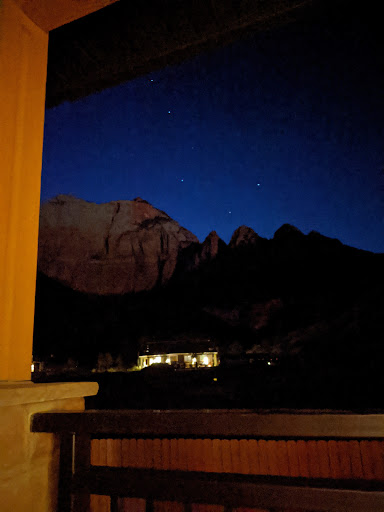 Our room had an amazing view of Zion's mountains from inside or on our terrace. Unfortunately it was cloudy both nights. No star gazing. It was also too cold to enjoy the hot tub. And it rained continuously Thursday night to Friday morning. We did not need the fitness room. We got our exercise in Zion National Park - a short shuttle or car ride away.