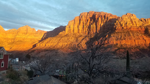 But the highlight of the trip was spending the late afternoons sitting by the hot tub--located at the top of a short trail behind the cottages. We were lucky enough to find this spot the first day we were there, and we made sure that at the end of each day, we ended up there to watch the setting sun flame against the rock towers of Zion across the valley from the inn. Zion has always taken our breath away, but at the end of the afternoon, it is more than magical (we added a couple of the MANY pictures we took just from that space behind our cottage).