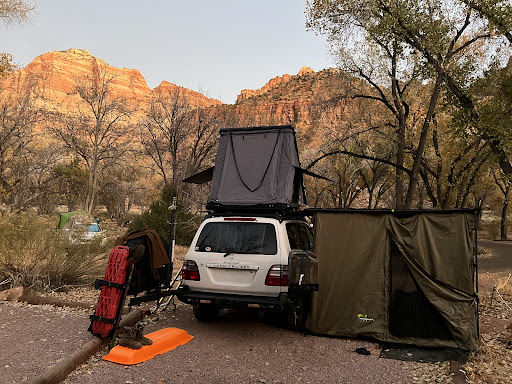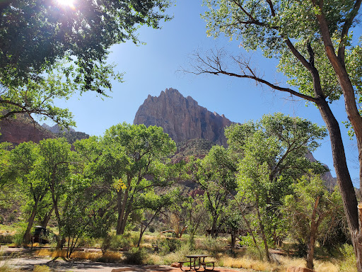 Read moreThis is the perfect camping location for those visiting Zion National Park. The sites are standard as with most other National Parks, fire pit with a grill grate and basic picnic table, although everyone but us was living in the lap of luxury — This is definitely the campground for DIY glamping! We saw fancy tents, full couches, living room furniture, Christmas lights strung up everywhere, decked out RVs, grommet meals and much more. Needless to say our simple setup looked downright homely by comparison. Set among large trees with the Virgin River on one side and the imposing Watchman mountain on the other, it is a short walk across the river into the incredibly touristy town of Springdale with its many restaurants, shops and bars. More importantly however, you can leave your car parked at the campsite because is also a short walk to the Zion National Park visitor center and the free-trams that bring you into the park itself. Light sleepers should know that this is a bit more of a “lively” crowd than other National Park campsites I have visited in the past (at least on the nights I was there) but it was all in good fun and nothing crossed the line. Something like that can easily be overlooked when you consider the amazing natural setting and wildlife with zero fear of humans freely roaming the campgrounds. The bathrooms were clean the staff very helpful. I would definitely recommend for those camping or...
