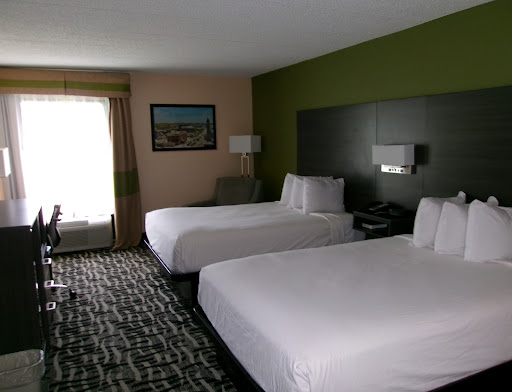 We are in OH for the weekend to show pigs. We checked in this hotel late at night. After check in we proceed to our room and I even noticed the hotel stunk. The first room we were given, one bed had NO bedding or pillows, the other you could tell it was slept in recently. We received a dirty room. When I brought this to the attention of the front desk we got another room assignment. My son and I walked to the said “new” room. The door key didn’t work. My son stated “mom I think someone is in there already.” I knocked on the door and yes the room was occupied. Mind you this was at 11pm. I go back down to the front desk inform them of the situation. They asked me to sign a 3rd paper for another room. I asked if we would be compensated for the issues and the embarrassment I just went through. The nice front desk guy called the manager on the phone…