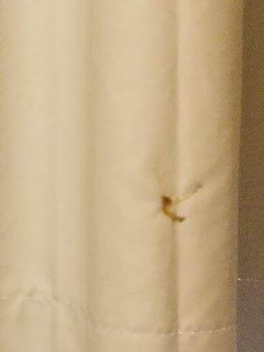 The front desk then moved us to another, final, third room. This all after my sister having surgery. We had to pick up and move twice ! (three times if you count the initial room). After getting in the third room we noticed that there was an unusual odor we did not know what it was and could never find it. We did however watch the people walk by outside, because in this room there was a crack above and below the air conditioner allowing you to see people's feet as they walked past your room and the construction workers were out there smoking so all the smoke from their cigarettes blew into our room!! (This is considered a non - smoking Inn). We also noticed that on a two prong plug, there was an extension made to allow 6 plugins. All six of those plugins were full with one of them contained an extension cord with a circuit breaker attached. Every single Major Appliance for that room were plugged in on the one cord, TV , microwave, refrigerator, coffee maker. They were all plugged in, along with the cable box for the internet. These major appliances were plugged into a extension cord, that was plugged into a outlet extension, that was plugged into a two prong box! Needless to say we unplugged everything so that we might have a good night's rest without risk of fire, at least from this room, as the Smoke Detectors were not working. My sister also stepped on a piece of aluminum or copper wire that was on the floor! This room too, did not look like it had been touched by any type of cleaning staff. MY sister and I are not prudes.... sometimes we don't vacuum our carpets every day... there are days we don't do our dishes every day..... sometimes I don't mop my kitchen floor every day.... but my house is not filthy! And I expect anywhere else I go, especially if I pay for it, to not be filthy as well. When I confronted the front desk about the condition of the rooms, each time I was told: "We're sorry, we have a new cleaning staff!" My suggestion (as my husband I have rented here several times with no incidents prior).... Go back to the original cleaning staff! Inexcusable. I WOULD NOT RECOMMEND THIS PARTICULAR INN. They were more concerned with, "passing the blame", than fixing the issue. Yes they moved us THREE times, but honestly it was just like changing a baby's dirty diaper, only to put another dirty one back on! Below are just an extremely few photos. #1: What looks to be boogers and snot, on the curtain you must move to turn on heading. #2: The smaller of all the three rooms cracks. #3 The smallest crack again. #4: Mens facial hair on sink. #5: Mens facial hair on sink. #6: THEIR idea of how to...