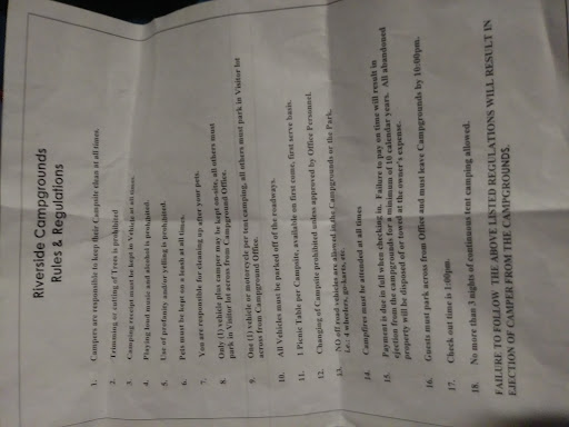 Photo of rules attached: (Please note it says continous tent camping. #18.)(Please not rule #3. The police saw that my receipt and rules were in my car as asked. Why is a copy of this form I didn't file out at??)