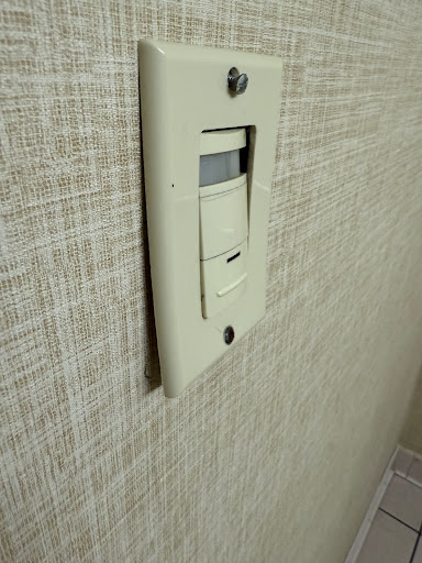 Now, let’s examine the men’s restroom on the fifth floor, specifically, the light switch, which looked like it was installed by a raccoon during a power outage. The top screw was dangling out like it was trying to escape, and the whole thing leaned out of the wall like it was whispering, “I wasn’t meant for this life.” Honestly, it gave off strong “final destination” energy, one flick away from either nothing happening or triggering a full blackout in the Midwest. Charming.