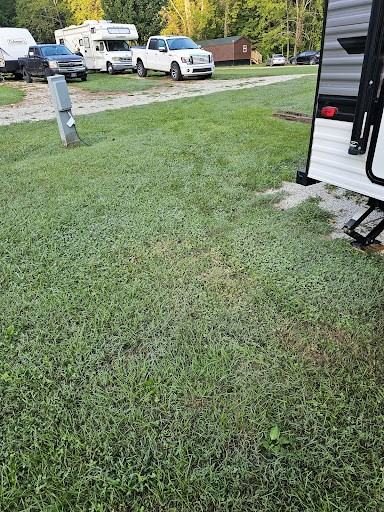 First the good: The scenery is beautiful. Big open campground surrounded by hills and smaller mountains.The cabins on the water look nice and the pond is really pretty. Stayed here for 5 nights in our camper. The place was just about at capacity, but because of our site (32) we weren't right on top of people. I highly recommend trying to get sites 32-38 if you need water and electricity. The other sites are tightly packed together. Fished in the pond and caught a few nice fish. They were definitely biting. There is a lot to do nearby with hiking, climbing and fishing. This is a good base camp for all those. Firewood is available on site for a reasonable price. If you are into snakes and reptiles, the Kentucky Reptile Zoo is within walking distance. The campground is pet friendly and I really enjoyed meeting other campers dogs.