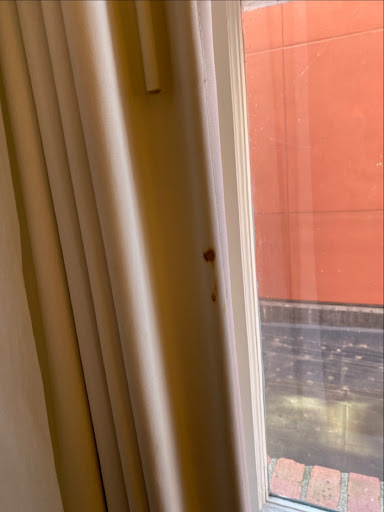 the first room I was placed in was not clean. At a glance it seemed fine, but after inspecting the mattress/bedding I noticed stains and hairs. I stripped the sheets to find no mattress cover. Just a thin felt rectangle (visibly dirty) that sat on top of the bare mattress, and a non fitted sheet… no mattress protector for pest prevention… nada. It was clear cleaning services were not checking the mattress or cleaning the beds appropriately. The mattress was sticky across the seams, black specks, blood/rust stains, and other debris. The curtains had blood/rust colored stains on them, and overall the room felt grimy.