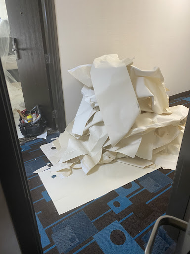 The room YUCK! 🤢 All outdated furniture. Clearly old and unkept. See photos-The ceiling was water stained. Dresser falling apart. And then…..we found used tobacco pouches, 1 next to the bed and one at the foot of the bed on the floor. Clearly the cleaning was not done. In the morning, I did give the evidence to JoJo who was yawning at the desk. She didn’t say 1 word about it when I gave them to her and told her where they were found.