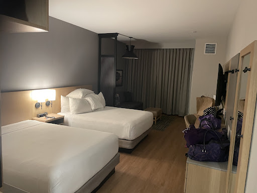 The room was nice. I read reviews before deciding on a hotel and saw unfavorable reviews of my usual favorite Hilton Garden Inn nearby. This Hyatt was said to be newer and Iโm glad I chose it! The beds were comfortable and I got the extra pillows I requested. The furniture and room layout were both pleasant and appealing. The views on the water side were worth the extra cost!!! So beautiful morning AND evening!